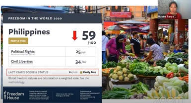 フィリピンの民主化を実現した1986年のピープル・パワー革命を契機に、フィリピンでは市民社会に多様なアクターが形成され、より積極的な市民参加が生まれてきた。革命から30年以上経った現在のフィリピンの民主主義の状況は、世界的な人権監視団体フリーダムハウス(米国)が2020年3月に発表した世界の民主度(Freedom in the world 2020)によると、100点中59点、Partly Free (部分的な自由)にとどまっている。また、エコノミスト誌のインテリジェンス・ユニットが発表したDemocracy Index 2019によると、特に Functioning of Government (政府の機能)と Political Culture(政治文化) の点で、他東南アジア国(マレーシア、インドネシア、タイ)と比較しフィリピンは劣位にある。フィリピンの民主主義全体の評価としては、2016年にマークした6.94 (Democracy index 2019, The Economist)をピークに徐々に下降基調で、民主主義が後退しているグローバルなトレンドと同じ傾向をコロナ前から示していた。
