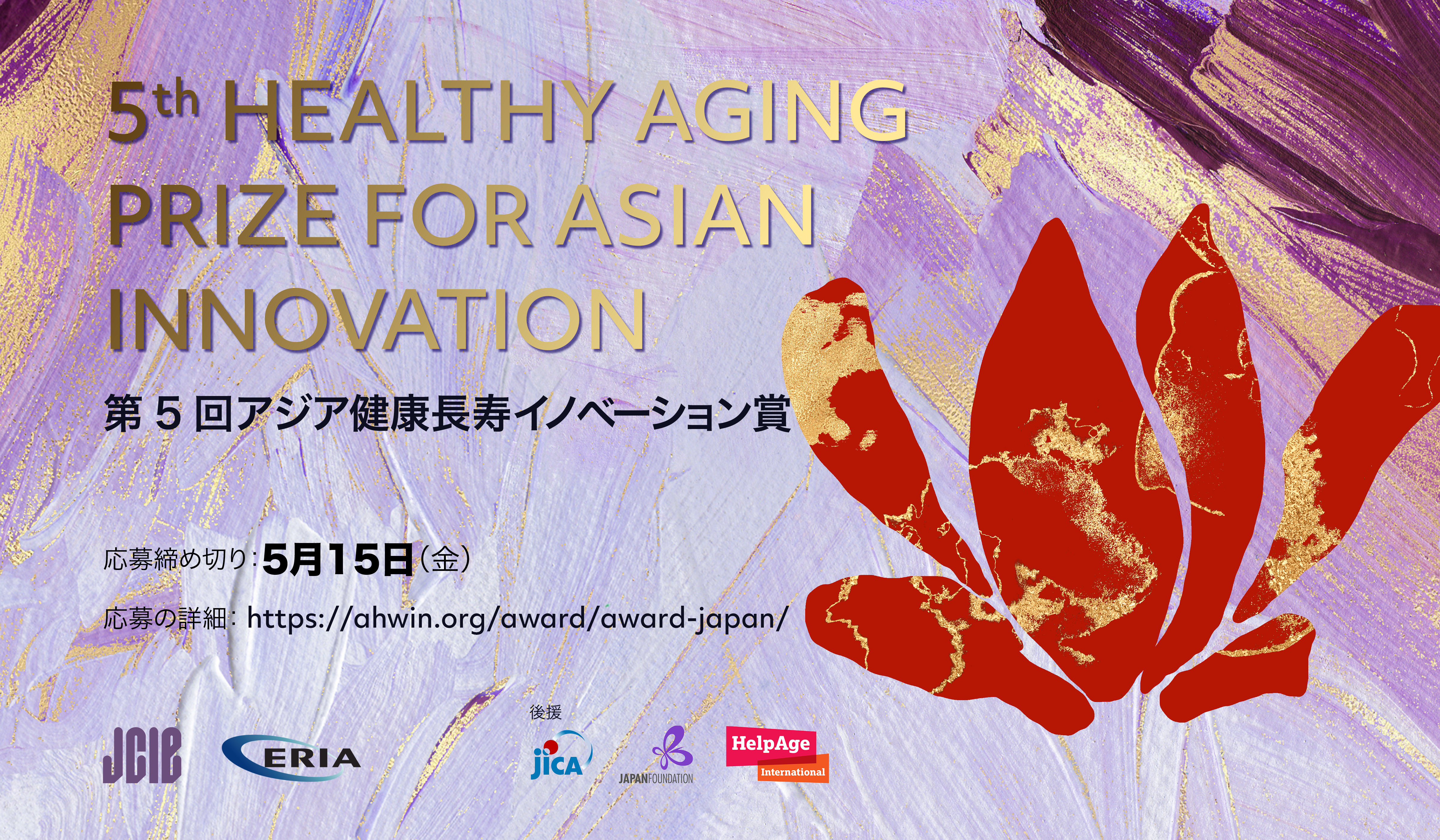 日本国際交流センター(JCIE)と東アジア・アセアン経済研究センター(ERIA)は、2020年に「アジア健康長寿イノベーション賞」(HAPI)を創設しました。本賞は、日本を含むアジア14か国・地域より、高齢化による様々な課題の解決となる革新的な取り組み(プログラム、サービス、製品、政策)を募集・表彰することにより、アジア地域内で優れた知見を共有し、その実際の応用を後押しすることを目的としています。これまで全4回公募を行い、アジア14か国・地域から300件を超える応募が集まり、そのうち10か国の35団体に賞を授与しその活動を称えています。今回も皆さまからの意欲的な取り組みのご応募をお待ちいたします。