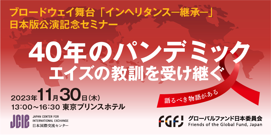 世界で最初にHIVが確認され現在も多くの人がHIVとともに生きる米国のニューヨークを舞台に、ゲイ・コミュニティの人々を描いた話題作「インヘリタンスー継承ー」(東京芸術劇場にて2024年2月公演)の主役エリックを演じる俳優 福士誠治さんに、役にかける意気込みをうかがい、日本で長年HIVやLGBTQの問題に取り組んできた生島嗣さんとお話いただきます。