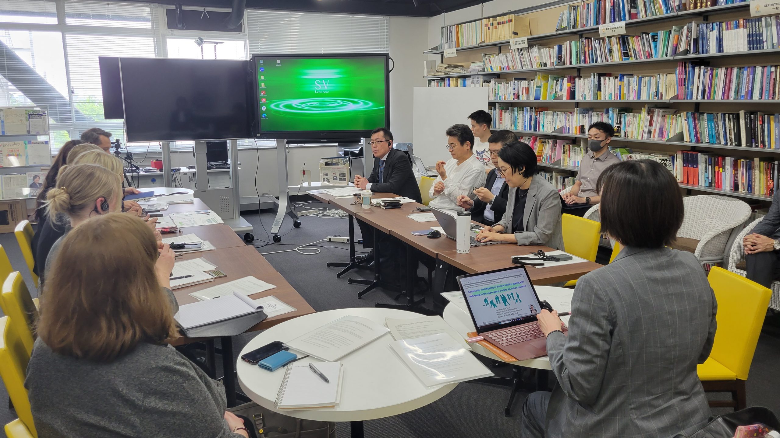 東京では、初日に厚生労働省老健局の長嶺由衣子氏よりブリーフィングを受け、日本の介護保険制度と地域包括ケア整備の政策について知見を深めました。また、東京大学高齢社会総合研究機構(IOG)とのラウンドテーブルでは、高齢社会の課題解決に向けたテーマ、具体的には、「フレイル予防」と「高齢者の生きがい」、「まちづくり」、「日本の地域共生」などについて活発な議論を交わしました。
